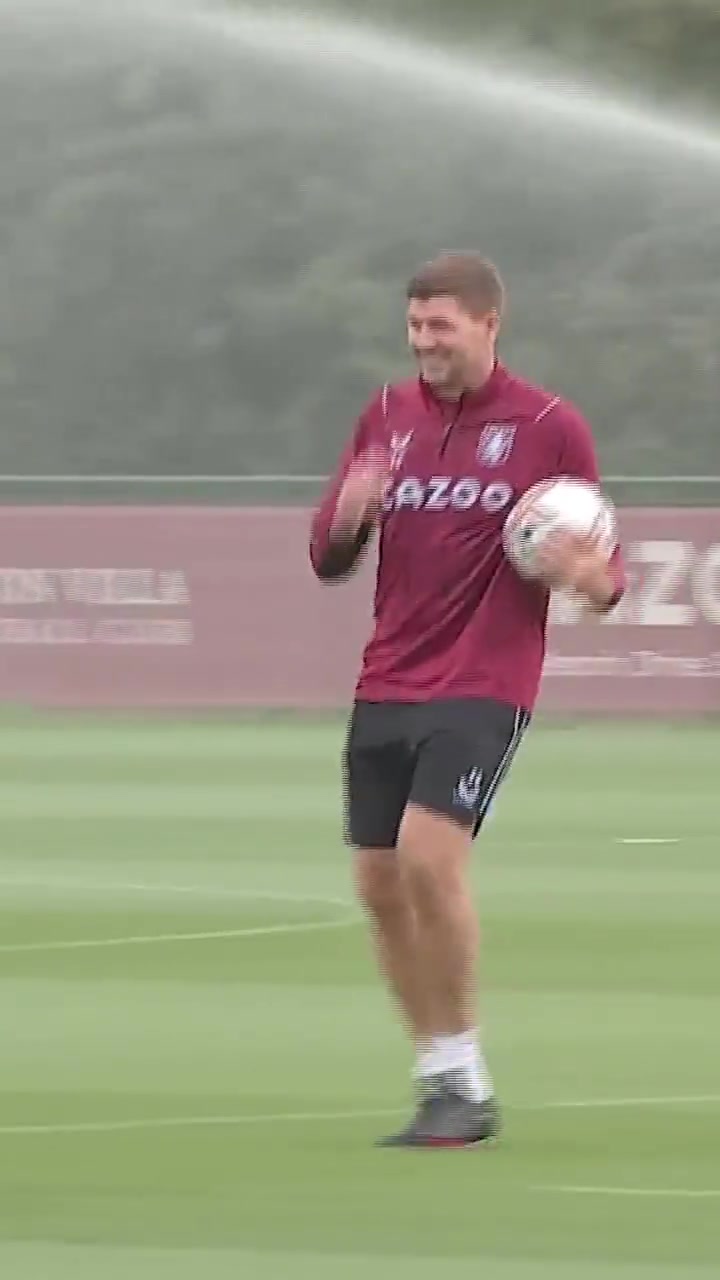 【搞偷袭!杰拉德训练中被洒水器滋了一身】