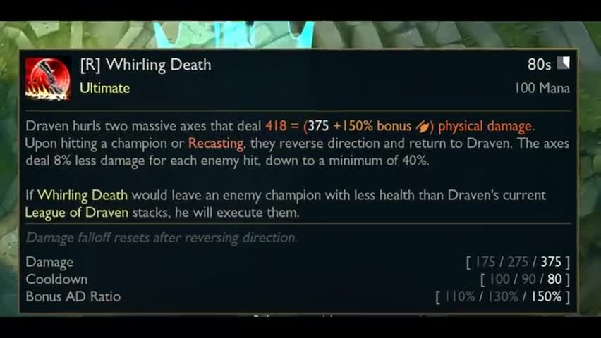 德莱文大招改动:敌方血量低于德莱文崇拜值,会被直接斩杀